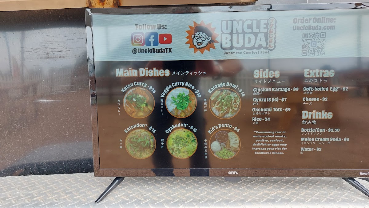 From a reviewer’s perspective, the menu at Uncle Buda Japanese Comfort Food offers a concise yet satisfying snapshot of classic Japanese comfort cuisine, thoughtfully adapted for everyday dining. The main dishes form the heart of the experience, with options like the Chicken Karaage Bowl, Katsu Curry, Katsudon, Oyakodon, and Curry Rice (Vegan) showcasing a balance between crispy textures, rich sauces, and hearty portions. Each dish feels familiar but comforting, appealing to both newcomers and regular fans of Japanese food. Complementing the mains, the side dishes such as the Chicken Karaage Side, Okonomi Tots, Gyoza Rice, and Katsu allow diners to mix and match, adding extra indulgence or variety to their meal. The beverage selection rounds out the menu nicely, featuring refreshing and nostalgic drinks like Melon Cream Soda, Ito En Green Tea, Ito En Barley Tea, Royal Milk Tea, and Calpico Soda, which pair well with the savory flavors of the food. A standout highlight is the rotating special, particularly Omurice (Wednesday), which adds an element of anticipation and encourages repeat visits. Overall, the menu feels focused and well-curated, emphasizing comfort, consistency, and approachable Japanese flavors, making Uncle Buda Japanese Comfort Food a satisfying destination for anyone craving a warm, casual, and flavorful meal.